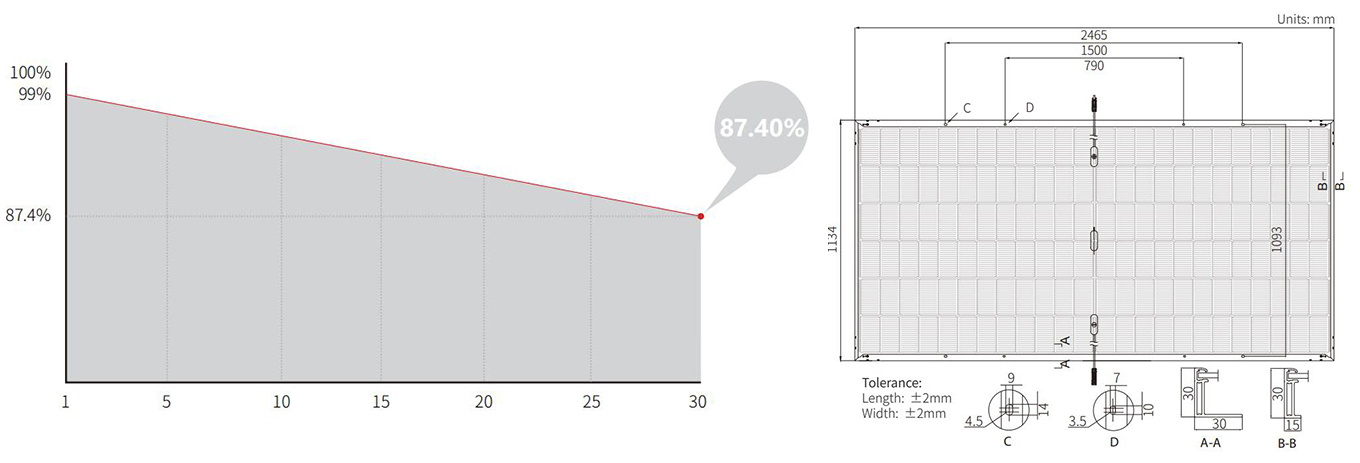 ▶ Une bifacialité élevée et un excellent coefficient de température de puissance offrent des gains de rendement énergétique significatifs.